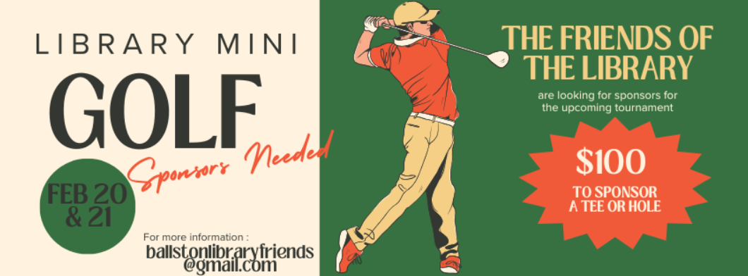 Join us for the Library Mini Golf Tournament on February 20–21 at the Ballston Community Public Library. Enjoy a custom nine-hole course while supporting the Library!